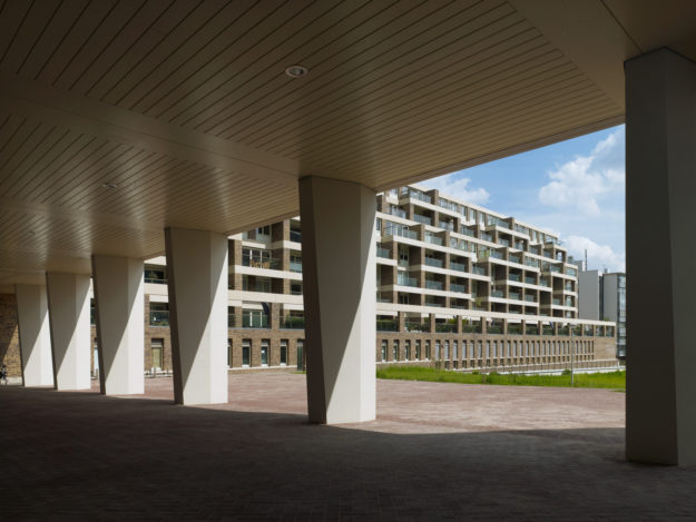 Op een kleine locatie in Buitenveldert ligt Crystal Court. Uitdaging: 37 gestapelde villa’s op een parkeergarage bouwen en het doorzicht van de wijk naar het park behouden.